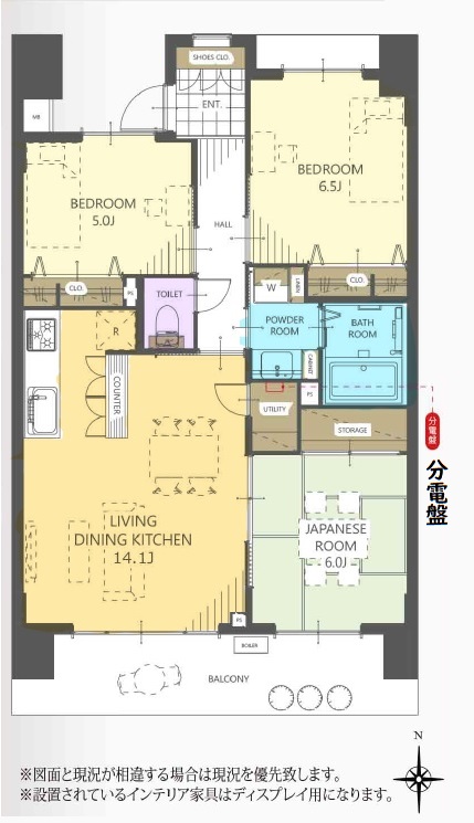 間取内訳 3LDK・LDK14.1畳・洋室6.5畳・和室6畳・洋室5畳