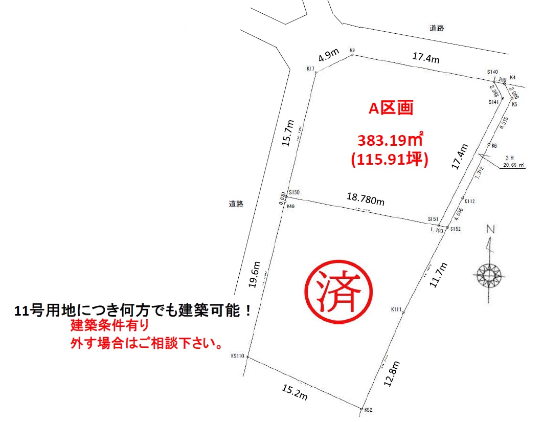 ⼟地⾯積 | A区画383.19㎡ | 私道⾯積 (共有持分) |