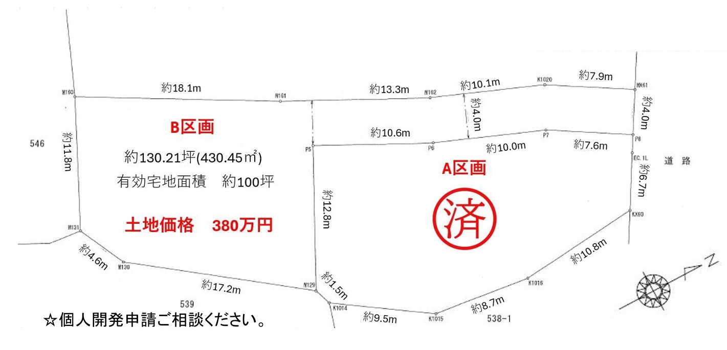 ⼟地⾯積 | 430.45㎡ | 私道⾯積 (共有持分) |