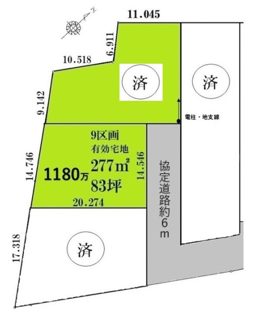 | ⼟地⾯積 | 277㎡ | 私道⾯積 (共有持分) |